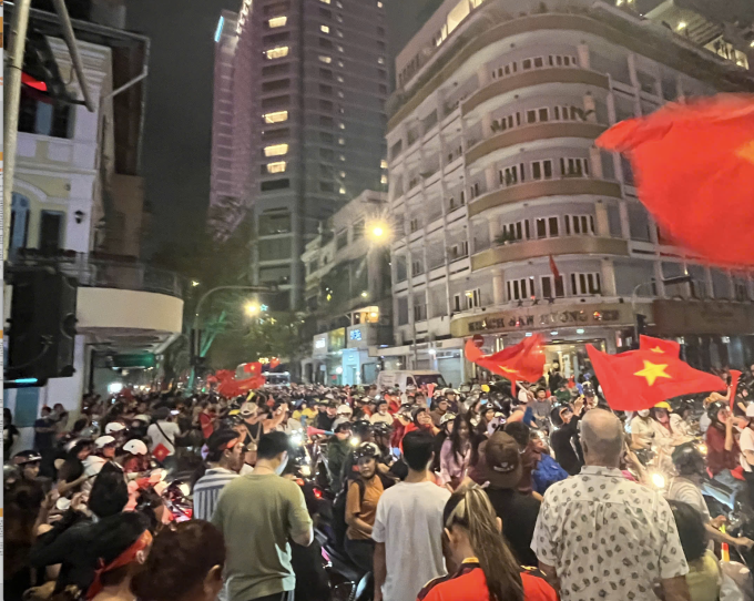 Người đổ ra đường mừng chiến thắng của đội tuyển Việt Nam ở đường Mạc Thị Bưởi,quận 1,TP HCM. Ảnh: Ngọc Ngân