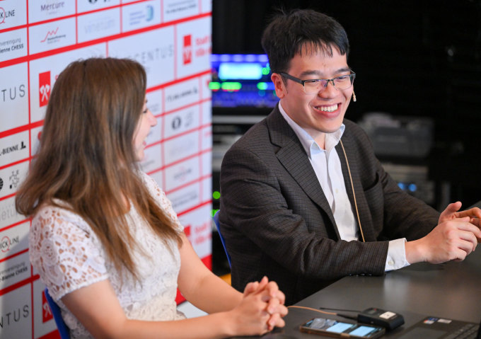 Lê Quang Liêm trong phỏng vấn sau một ván đấu tại Biel Grandmasters tại Thụy Sĩ ngày 25/7/2024. Ảnh: BCF