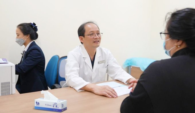 Bác sĩ Khanh tư vấn cho người bệnh. Ảnh: Bệnh viện Đa khoa Tâm Anh