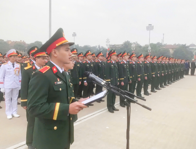 Quyền đại diện học viên khóa 55,Học viện Kỹ thuật quân sự báo công trước Lăng Chủ tịch Hồ Chí Minh,tháng 12/2024. Ảnh: Nhân vật cung cấp