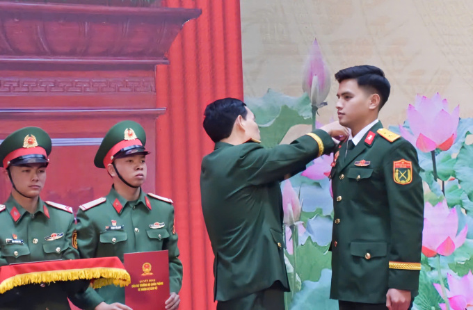Quyền nhận hàm trung úy trong lễ trao bằng tốt nghiệp tháng 12/2024. Ảnh: Nhân vật cung cấp